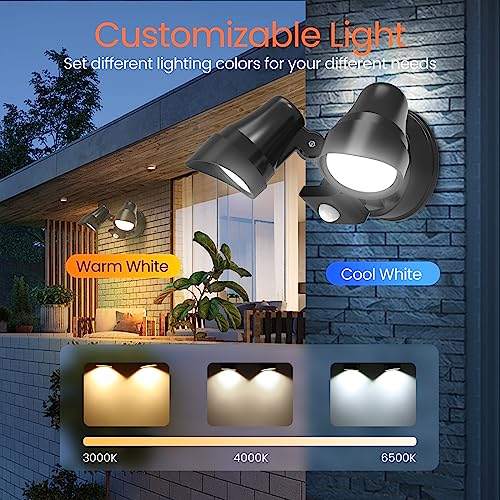 - ✅【Color Temperature Adjustable】LED security light outdoor with motion sensor, warm white 3000k, neutral white 4000k and cool white 6500k can be adjusted, you can test and choose your most desired color temperature before installation.