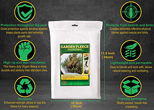 • More durable than standard fleece : this 30gsm heavy duty fleece has high tension tear and rip resistance, allowing you to use it for protection of your own plants for many seasons.