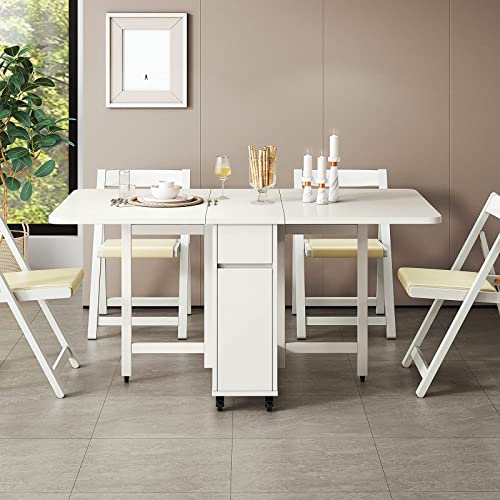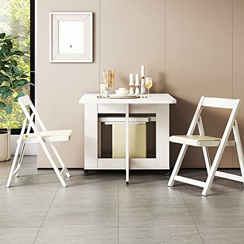 DISHENGZHEN Folding Table Set with Expandable Dining Table, 4 Chairs, Solid Wood Kitchen Table, Space-Saving Compact Folding Dining Table for Hom