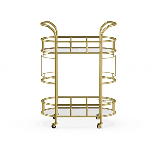 Home Kitchen Furniture FEER Bar Cart, Gold Metal And Glass Serving Cart,With Wheels And Handle,For Kitchen, Club, Living Room, Bar