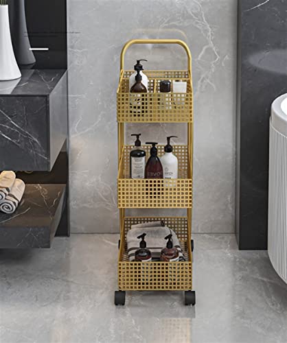 FGHOEV Scandinavian Iron Shelves Bedroom Kitchen Metal Removable Bathroom Storage Rack With Wheels Trolley