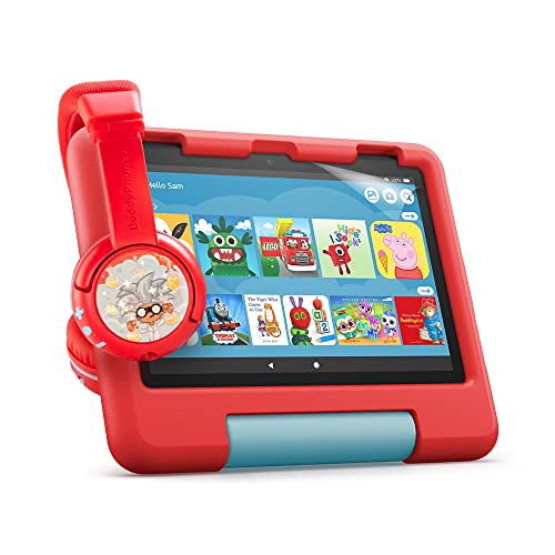 • This bundle includes Fire HD 8 Kids tablet (Red), BuddyPhones PlayTime Bluetooth Child Headphones (Poppy Red) and NuPro Screen Protector (2-pack).