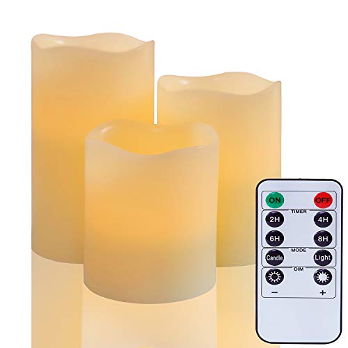 - GOOD VALUE PACKAGE:A package of 3 flameless candles(Size: Φ 3.15″ x H 4″/5″/6″),1 remote control,1 operating manual.Batteries are NOT included.Using 2 high-grade AA batteries can provide 300+ Hours of continuous ambience.