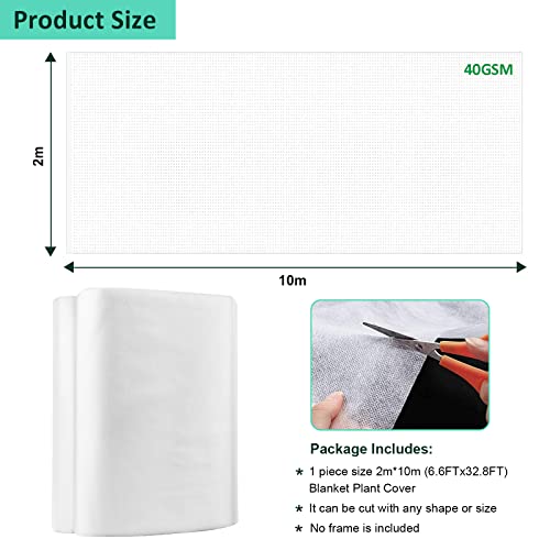 - Easy to Use 2x10M Large Outdoor Plant Blanket: You can use a whole piece of garden fleece plant protection roll and protect the entire garden, or you can cut them into small pieces for wrapping fruit trees, potted plants. When using, only need to loosely winter garden fleece directly on the plant, fix it on the ground with soil, stone or nail; you can also set a simple frame above the plant to support the plant fleece and provide it with enough growth space. Allows you to install easily.