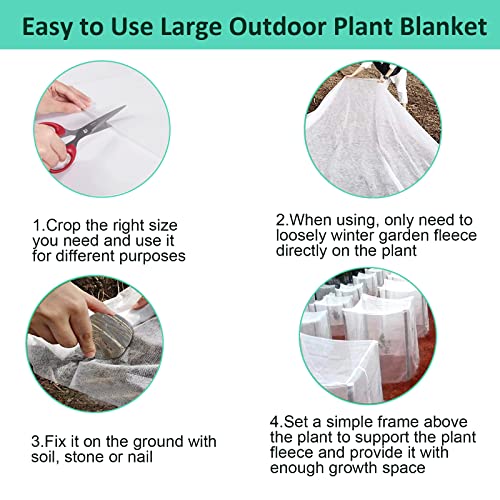 - Safe and Reusable Frost Cloth: The material of the horticultural wool is safe and environmentally friendly, breathable, light and water permeable, and will not interfere with the normal growth of your plants. It can protect vegetables from wind, insects, and birds, and provide the best safety protection for your garden plants. The thick material makes the gardening fleece reusable, and the used fleece plant covers can be kept intact after washing. It can always help in the four seasons.