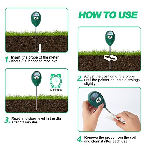 - 🌱Ease to Use - When in use, you just plug the tester into the soil and you can read the value. Our tester does not require batteries or power, so you can use it both indoors and outdoors at any time.