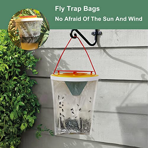 - 【Effective In Catching Flies】Fly trap outdoor is an effective and non-toxic hanging trap for capturing flies outdoors. Each fly trap bag contains a small bag of bait. The fly trap emits an odour that fascinates the flies and is highly effective in luring flies and other pests into the trap from which they cannot escape. Common pests attracted to these traps include house flies, blue bottle flies, green bottle flies and many more.