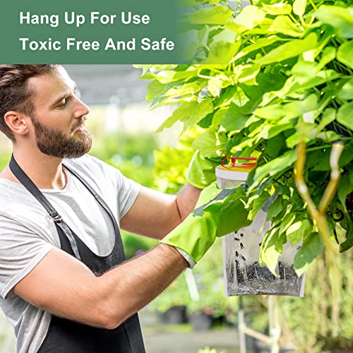 - 【Nontoxic & Environmentally Friendly】Our baits are non-toxic and environmentally friendly and are harmless to humans and pets. The hanging fly killer bag saves you money on fly sprays. The high quality PP material keeps it from being damaged by normal sunlight, rain and wind. High-capacity disposable outdoor fly trap can catch up to 20,000 flies!