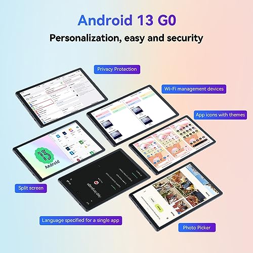 - 📣【Intelligent Operation】The Freeski 10-inch tablet is powered by the newest "Android 13" operating system. Android 13 brings better privacy and security, gives you a personalized interface, and improves things like Wi-Fi, photo picker, Google interface, and Bluetooth audio. Providing you with a more personalized, secure, and efficient user experience.