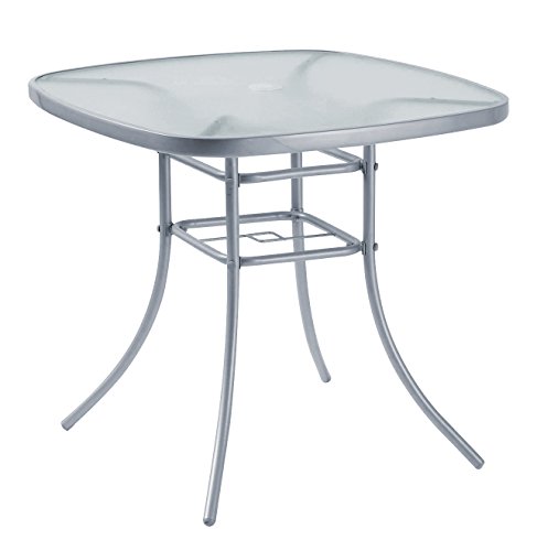 Home Garden Furniture Garden Furniture Patio Table Outdoor 80 x 80cm Silver Steel with Umbrella Stand Hole On Top