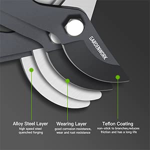 - 【SK-5 blade】The blade of the lopper is made of SK5 alloy steel and coated with Teflon,which is durable and does not embroider.The blade allows for sharp cutting and smooth shearing
