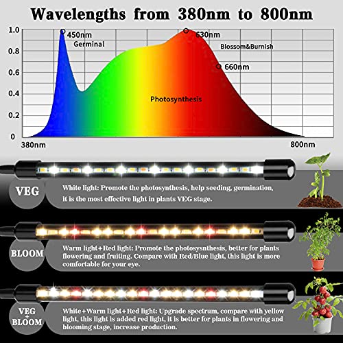 - ❀[Newest 4 Heads Grow Lights & Full Spectrum] Garpsen growing light is designed with 4 goose necks, provides a much wider coverage area than grow lamps with shorter led bulbs in the market and meet the needs of multi-layer planting. This grow bulbs includes 80PCS leds, and its spectrum 630-660nm and 400-470nm are the most effective spectrum to help plant photosynthesis.