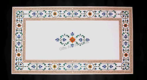 • Size & Material: 24 x 48 Inches , Thickness - 1 Inches Premium Quality Indian Marble and Semi Precious Gemstones Used.