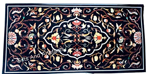 Gifts And Artefacts 24 x 48 Inches Fruit Pattern Inlay Work Kitchen Table Top for Home Furniture Decor Rectangle Black Marble Dining Table