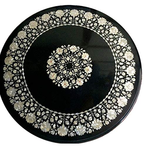 Home Kitchen Furniture Gifts And Artefacts 42 x 42 Inches Antique Pattern Inlay Work Kitchen Table Top Black Round Shape Marble Dining Table with Royal Look