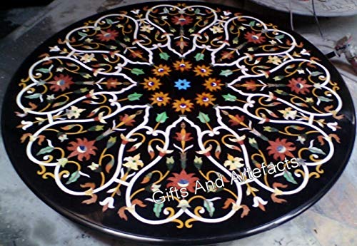 Home Kitchen Furniture Gifts And Artefacts 42 x 42 Inches Elegant Look Dining Table Top with Marquetry Art Round Shape Black Marble Hallway Table for Hotel Furniture De