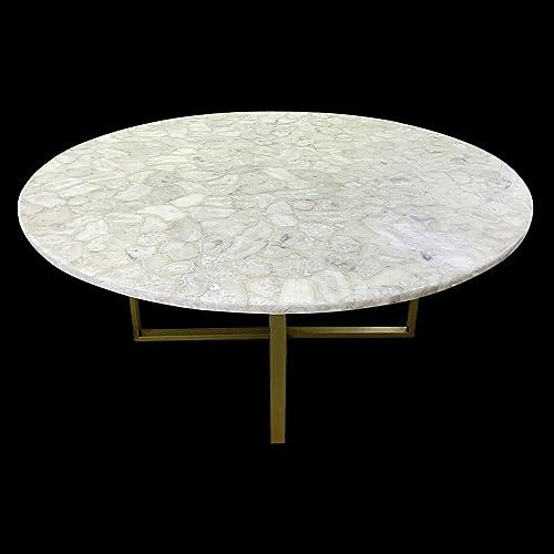 Gifts And Artefacts 48 x 48 Inches Epoxy Art Dining Table Top with Royal Look Round Shape White Agate Stone Meeting Table for Office Furniture De
