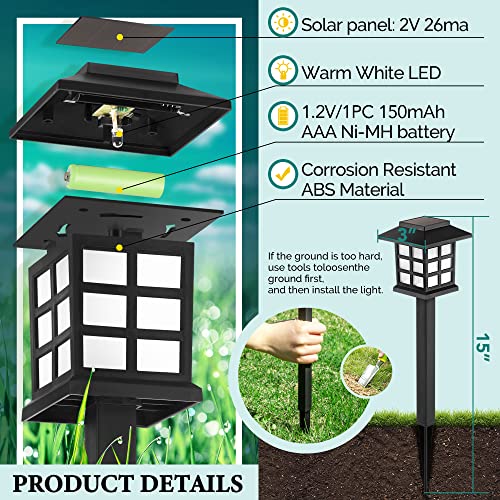 - 【Good Performance】Solar yard lights are equipped with a 1.2V/1PC 100mAh AAA Ni-MH rechargeable battery and 2V 26ma Solar panel, which ensures that it can efficiently convert solar energy during the day and continue to light up your yard at night.