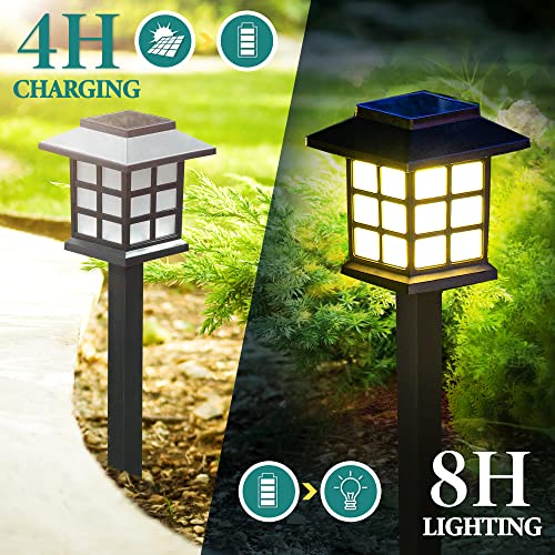 - 【Energy Saving】The solar garden lights are powered by the sun. They automatically charge during the day, over a period of 6-8 hours. Then, they turn on automatically at night, providing you with 8-10 hours of lighting.