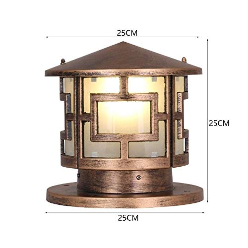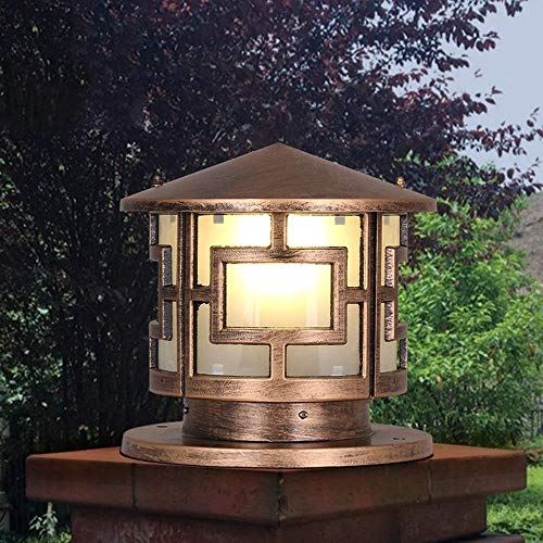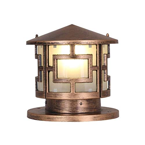 GJCQZQ Exterior Rainproof Round Outdoor Waterproof Column Head Light Park Community Garden Street Lights Wall Pillar Light E27 Lighting Porch Pat