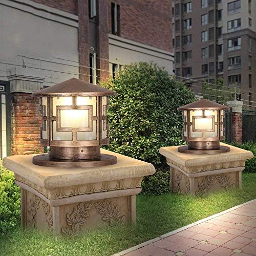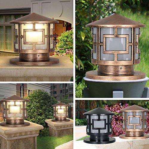 HomeGarden Furniture GJCQZQ Exterior Rainproof Round Outdoor Waterproof Column Head Light Park Community Garden Street Lights Wall Pillar Light E27 Lighting Porch Pat