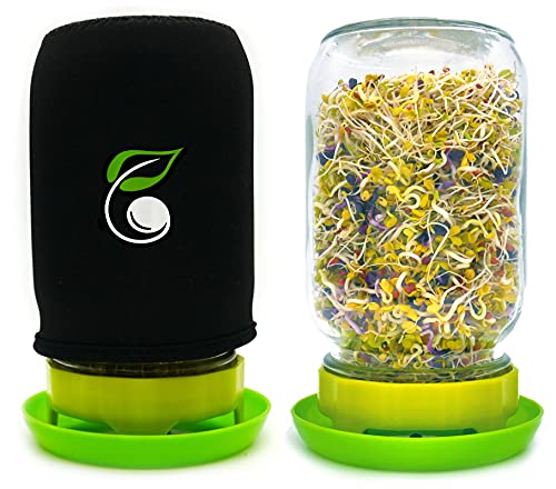- ✅ COMPLETE SPROUTING JAR KIT: Our sprouting jar kit includes a durable and washable black jar cover, a wide-mouth 32 oz mason jar, a mesh lid, and a drip tray. Start growing your own fresh sprouts effortlessly.