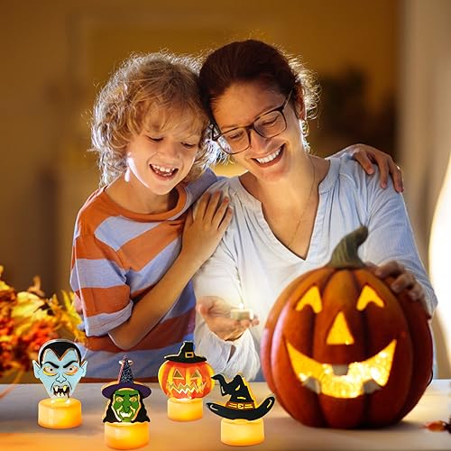 - Unique Halloween Candle Design: These Halloween battery tea lights look very cute and creative, perfect for Halloween indoor home party festival decor, and Halloween classroom decorations. These Halloween decor lights are a great way to create a wonderful Halloween atmosphere, can be used to decorate your mantle, fireplace, dining table, party, home, room, party, bedroom, window, desktop, kitchen, etc. Besides, they are also the perfect Halloween gifts for family and friends.