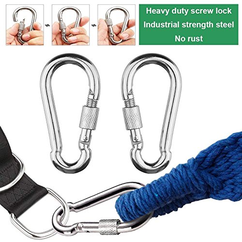 - 【2xSnap-hook Carabiners&1 x 360° Bonus Spinner】The included 2 snap-hook carabiners are made of industrial strength steel making it nearly indestructible. To prevent the straps from coming off while swinging, we designed our carabiners to include a heavy duty screw lock for more safety. M10 swivel/spinner can holds up to 2800lbs, use the handy, industrial grade 360°swivel hook if you want your swing to be able to spin around endlessly without binding up or twisting the strap