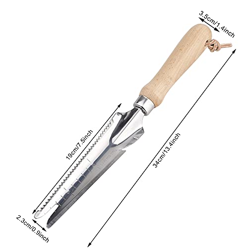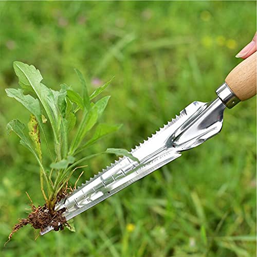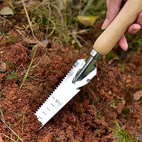 - HIGH QUALITY MATERIAL -The long sawtooth shovel plant transplanting tools are made of the stainless steel, which are not deformation, sturdy, durable and rust-resistant. Skidproof comfortable wooden handles allow easy wrist movement and reduced hand fatigue while working.