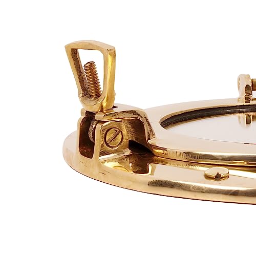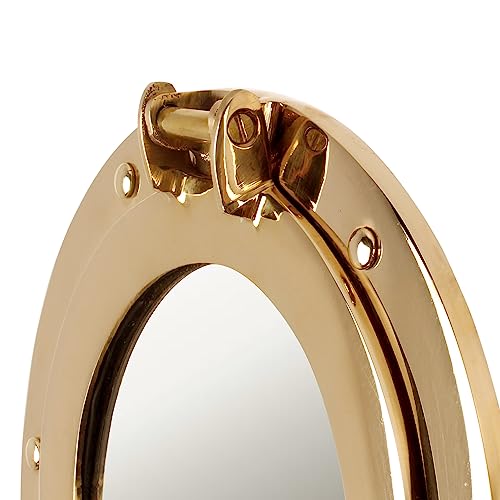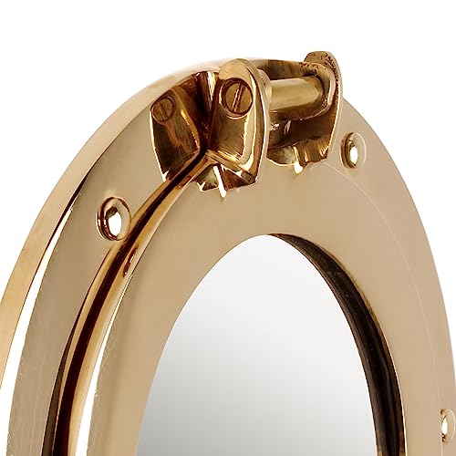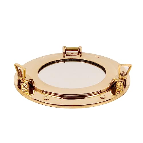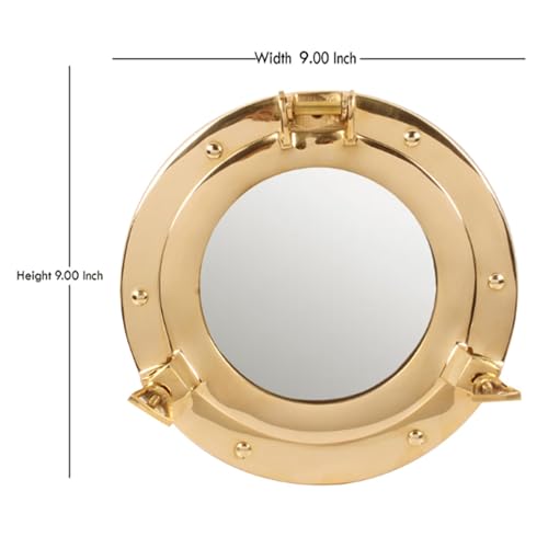 - DIMENTIONS: Diameter : 11 Inches | Viewing Area : 7.50 Inches.PACKAGE INCLUDES: 1 pc 11” Nautical Brass Ships Porthole Mirror Window.WIDE APPLICATIONS: It is really a perfect addition to any nautical setting. The wall clock can be used as a perfect nautical wall hanging decor to accent your home. It is really a good choice for those who love sailing and nautical wall art. It is also a perfect gift for seafaring family members.EASY TO INSTALL: It's very Classic and Easy to Install.