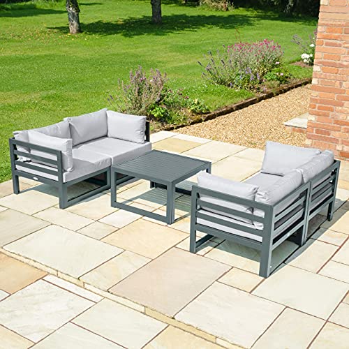 - COFFEE TABLE OR FIRE PIT TABLE UPGRADE - The 4 seat aluminium garden chairs and table set is available on its own, or you can upgrade and include a coffee table or fire pit table with your garden sofa set.