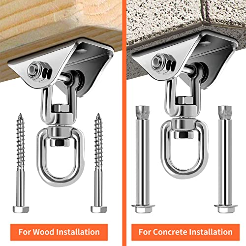 Heavy Duty Swing Hangers 360°Rotate Heavy Duty Hooks for Hanging 304 Stainless Steel Swivel Hammock Hooks Swing Hook for Ceiling Wooden Porch, Gy