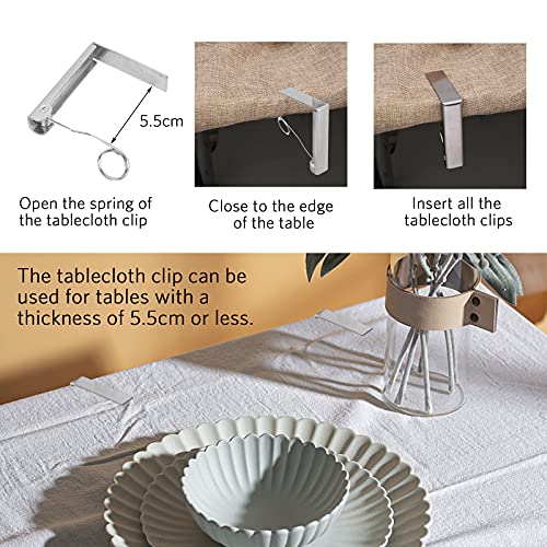 - 【Stainless Steel Tablecloth Clips】Tablecloth clip is made of premium stainless steel with a smooth edge to prevent scratching the tablecloth, leaving no marks on the tablecloth, sturdy and durable, and can be used repeatedly compared to plastic.