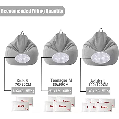 - >>>DIY Filling: The Adult Bean Bags Cover has only Cover and No Filling inside. You can DIY filling according to your needs. With its large capacity, the bean bag filling can also be used as a storage bag.