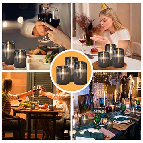 - 🎆3D WICK REALISTIC FLAME: Flameless candles are made of real wax with a grey glass, 3D wick and warm light, which creates the illusion of real flames and creates the romantic atmosphere, providing a realistic visual experience