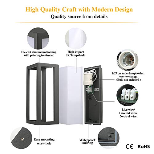 - 【Easy Bulb Replacement】 Swapping out light bulbs is a breeze with our outdoor wall lamp. Simply use the included Allen key to remove the wall lamp cover and replace the bulb with any compatible E27 socket incandescent, LED, CFL, smart bulb or halogen bulb (bulb is NOT INCLUDED, Maximum power 40W).