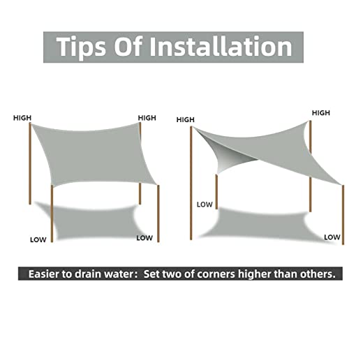 - 【Easy to install】Each corner has a stainless steel D-ring, which can be easily and safely installed with ropes or fixing kits. Tip: Leave 1.5-2 feet between the anchor pile and the sun sail for hook or rope installation. NOTE: The poles are not included in the package.