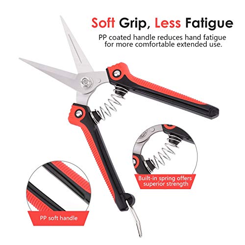 - PREMIUM MATERIAL: Pruning scissors made of high carbon steel with ultra-fine polishing technology, which is strong and abrasive resistance, the blades are heavy duty and will stay sharp for a long time.