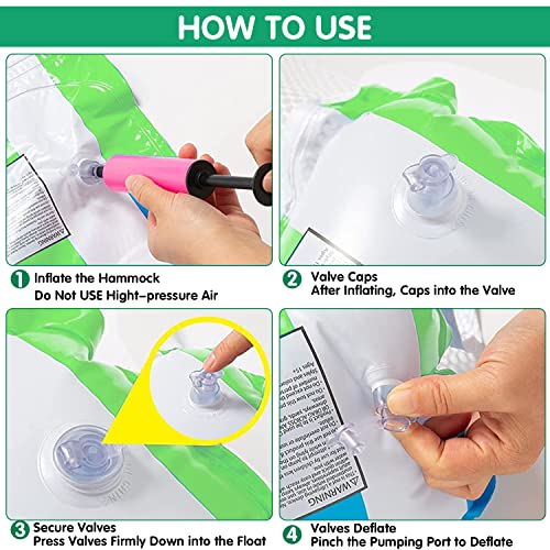 - 🌊 【4 in1 Multiuse Inflatable Hammock】A unique 4-in-1 multi-purpose water hammock , which can be used as a floating hammock, leisure chair, drifter and sports saddle. This is a perfect object floating on the water, you can freely change your posture on the water hammock, entertain and relax in the swimming pool.