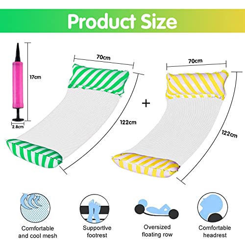 - 🏄【Safe Material】The inflatable hammock 2 pack is made of high-quality PVC, safe and environmentally friendly, strong and thick, and covered with a soft and comfortable mesh cloth, which brings great comfort to your skin. Even if you are not good at swimming, you can also enjoy the water play with this inflatable pool float.