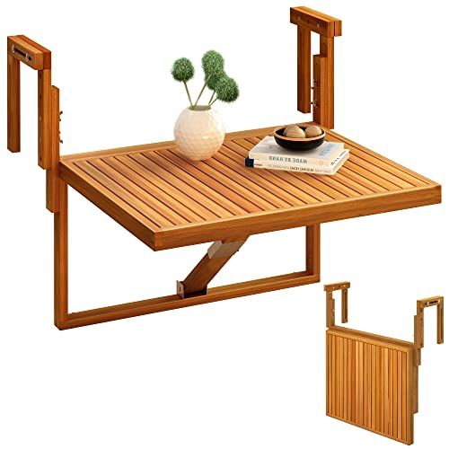 • [SPACE SAVING]This versatile table features 3 adjustable height positions, allowing you to easily switch between a regular chair height and a high-top position. Made to fit seamlessly with our Casino or Sofia chairs, the traditional arm folding mechanism makes it easy to store when not in use, whether you're enjoying a meal or just soaking up the sun, this Balcony Table Hanging offers the perfect platform for all your outdoor activities.