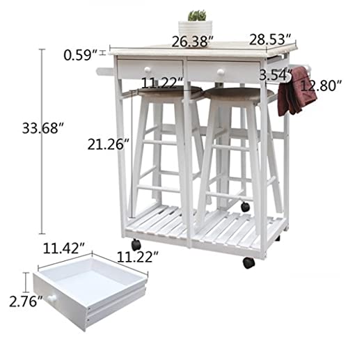 JAHH Dining Room Kitchen Foldable Wooden Handle Semicircle Dining Cart With Round Stool White