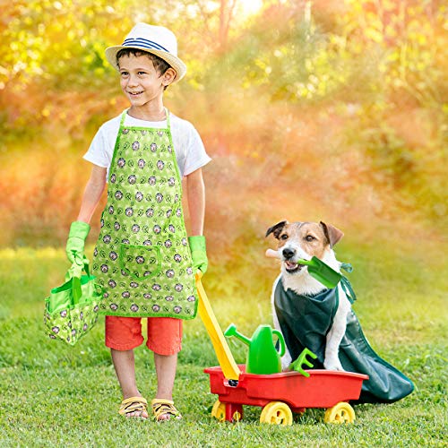 - 【Kids Garden Bag & Apron】- This kids garden set comes in unique hedgehog pattern attracts and delight your kids closely. Cute kids gardening gloves and apron let kids enjoy outdoor fun without get dirty, both comfortable and easy to clean.