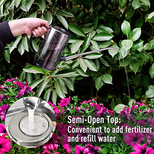 - 【Long Stainless Steel Spout】- Our watering pot has a long 22cm nozzle made of stainless steel, help to water precisely without splashing on table, easily reaches into dense flowers and grass soil directly.