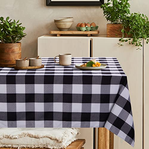- 𝐏𝐫𝐞𝐦𝐢𝐮𝐦 𝐌𝐚𝐭𝐞𝐫𝐢𝐚𝐥:The Tablecloth is made of 100% Polyester material. This fabric table cloth is durable and easy to clean, soft touch. Perfect for Indoor and Ourdoor Use. Our wrinkle resistant checkered table covers protect your table and furniture from scratches, stains and sun rays.