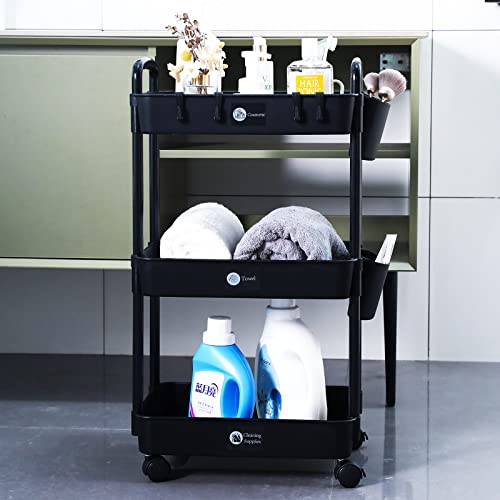 • Large Capacity: With 3-tier large storage shelf, this utility cart provide enough storage space and save your floor space to optimize space utilization. You can easily and reasonably plan every shelf to store the required items, and quickly access things at a glance. This storage trolley on wheels will be a good helper for home organized.