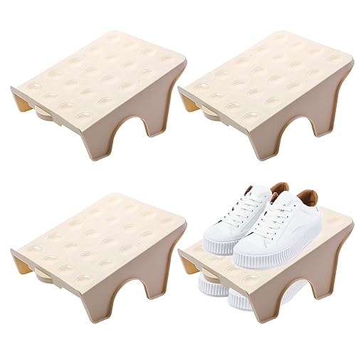 - Maximize Closet Space: With its innovative double deck shoe rack design, our 4 pcs shoe slots organizer provide storage for up to 8 pairs of sandals, heels, flats, sneakers, and more. The double-layer design allows you to stack your shoes vertically, effectively doubling your shoe storage space in your closet.
