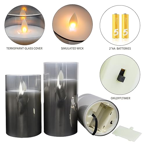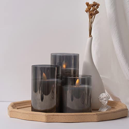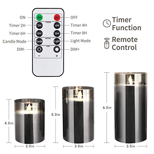 - Set of realistic flameless candles comes with 3 pillar candles( 4" 5" 6"). It adopt flickering flame technology, the wick move as real wax candles creating a lovely warm glow.
