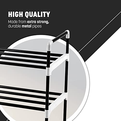 • HIGH QUALITY: Made from extra strong, durable metal pipes that do not rust or corrode with normal use and premium quality PP plastic connectors, this shoe rack is built to last.