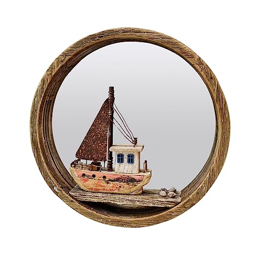 - Wall Hanging Sailboat Mirror: Nautical wall mirror comes with sailing boat wall mounting supplies(boat is 4 X 5.12 inches), there is little white paint, the reflection is true, create an illusion of space and to amplify the apparent size of a room.